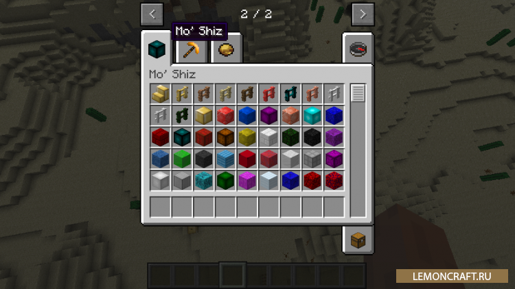 Мод на новые инструменты Mo’ Shiz предназначен для расширения возможностей игры путем добавления новых блоков, инструментов, оружия и других фишек. В игре появится множество разноцветных блоков, новая еда, новая руда, лестницы. Проще говоря это мод с кучей всего разного. Если вам не хватает блоков в игре этот мод точно вам подойдет.